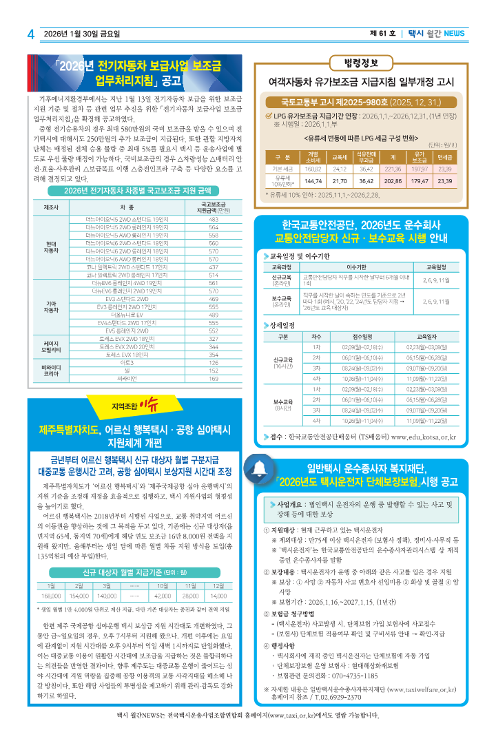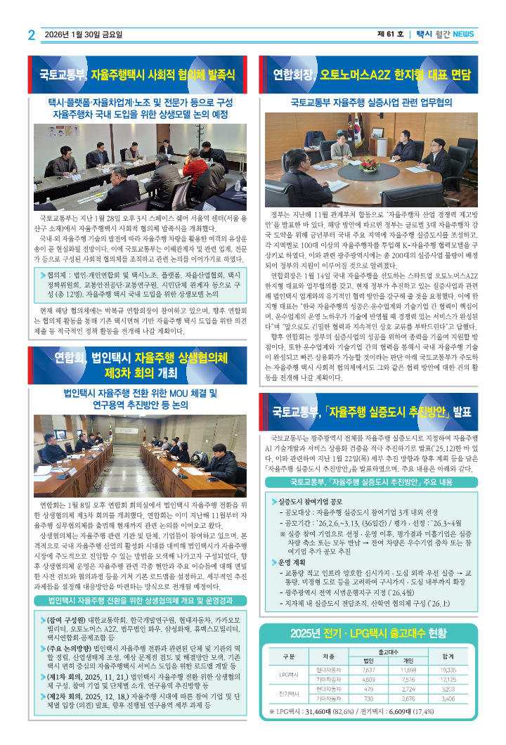 2026년 택시 연합회(1월)월간 소식입니다.