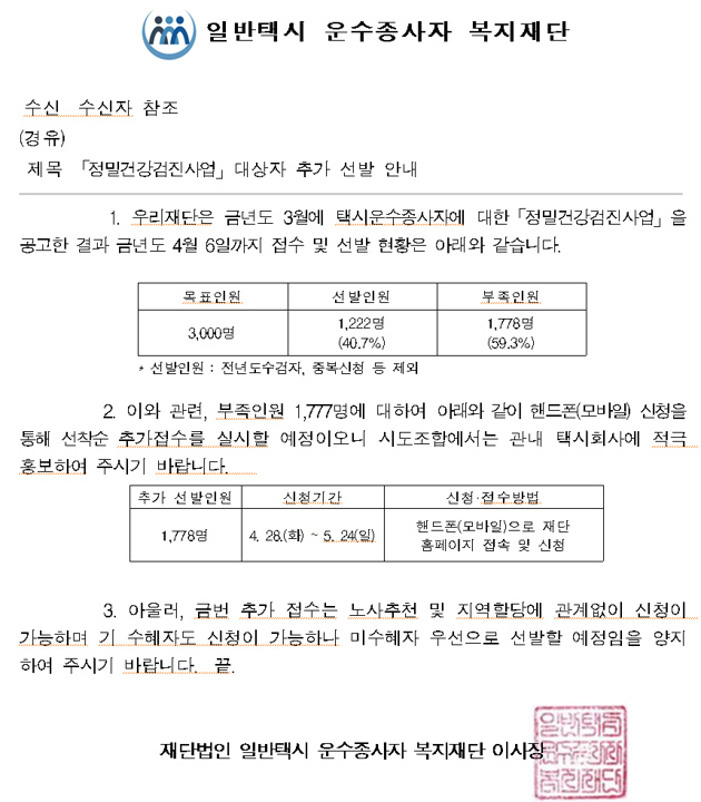 「2026년도 정밀건강검진사업」 대상자 추가 선발 안내- 복지재단